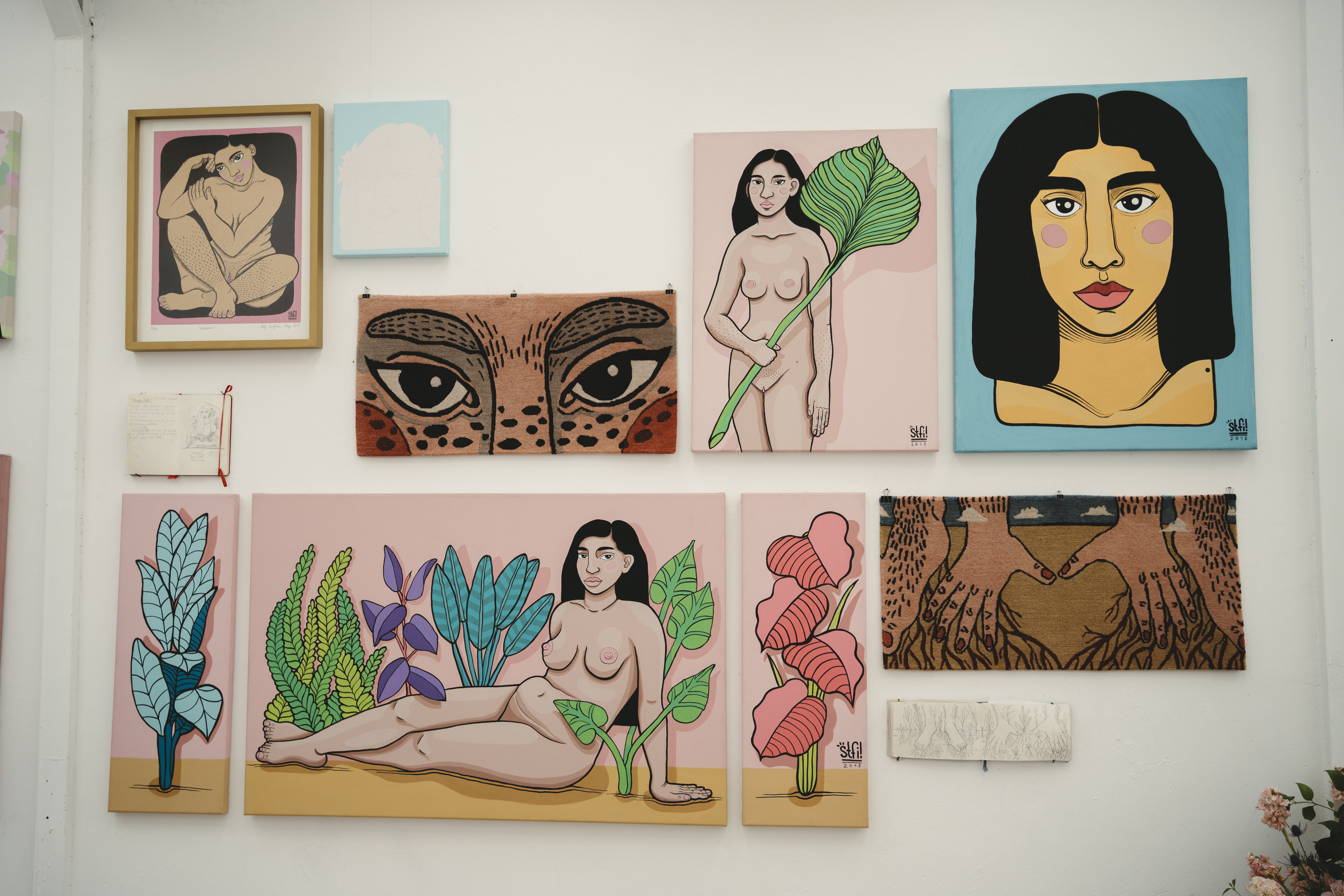 La muestra que hoy se presenta, es la quinta de las exposiciones de Stfi Leigthon; “Jardín Interior” (2018); “Florecer” (2021), “Recorrido corporal” (2022), “Naturaleza Salvaje” (2023) y ahora “Retrospectiva” (2024) de ese viaje eterno y el proceso creativo incesante de Estefanía, quien nos abre entre sus mujeres y cuerpas, un pliegue más de sus intimidades, entre bitácoras y dibujos, telas, objetos y memorias que atestiguan el camino de la artista en su comunión permanente con el territorio, a través del cual expande su paleta de colores planos y el trazo firme de su pulso pulcro.